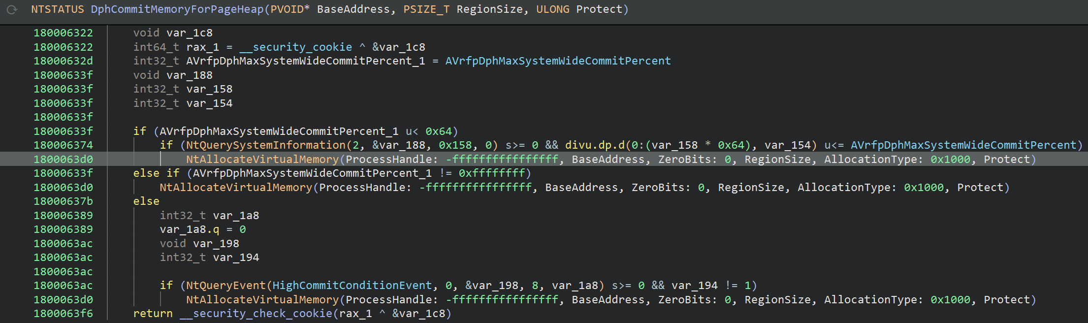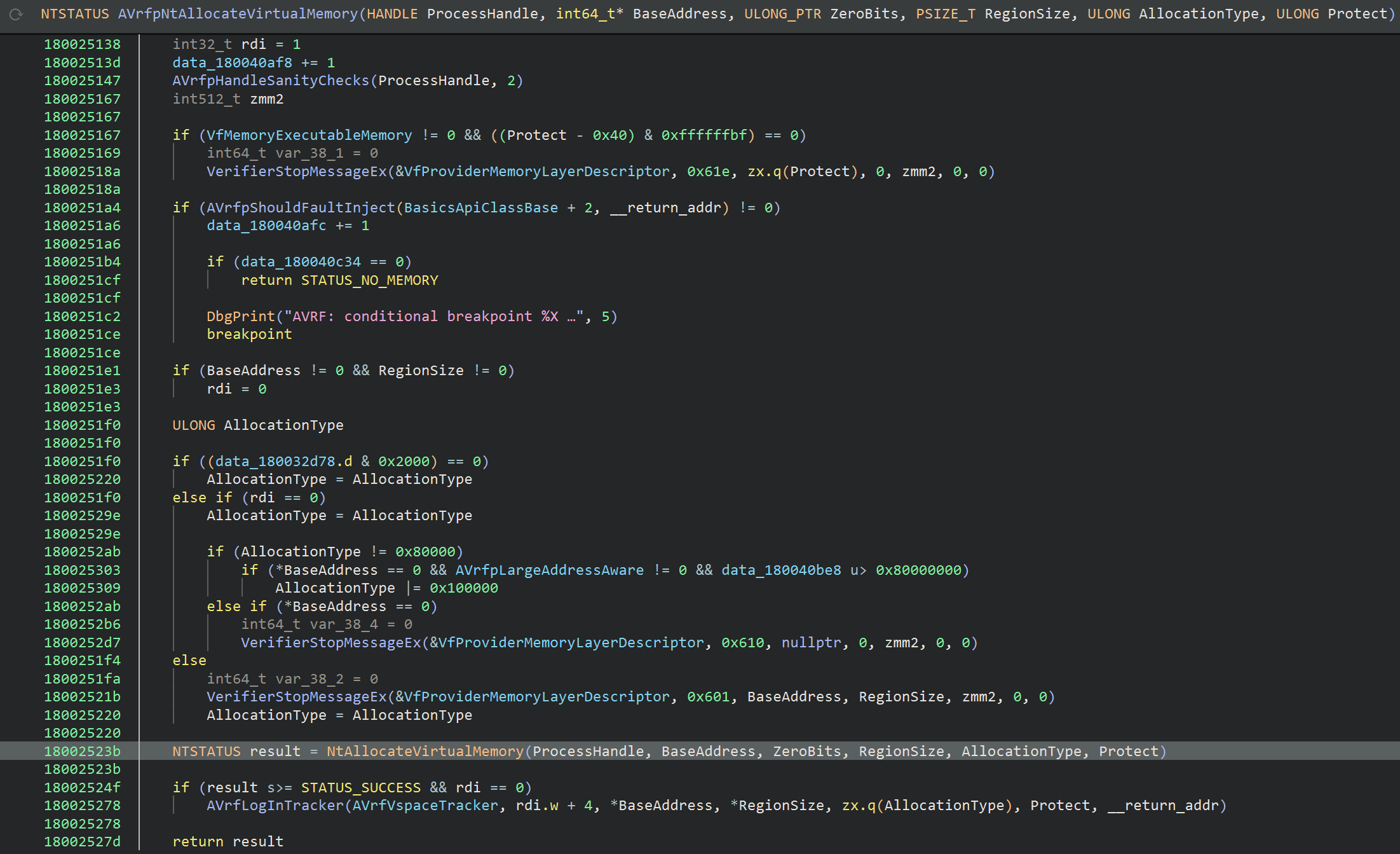 AVrfpNtAllocateVirtualMemory_t AVrfpNtAllocateVirtualMemory = (AVrfpNtAllocateVirtualMemory_t)((char*)hVerifierMod + 0x25110);