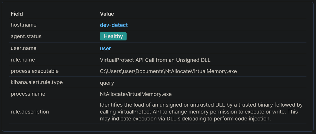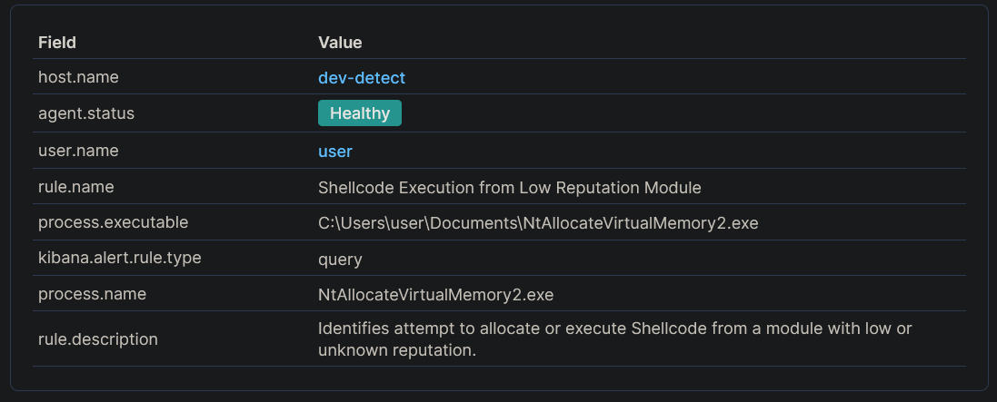 After testing this with an actual loader and modified [Havoc](https://github.com/HavocFramework/Havoc) (Demon agent shellcode) as our C2 of choice, Elastic Defend did not generate any alerts.