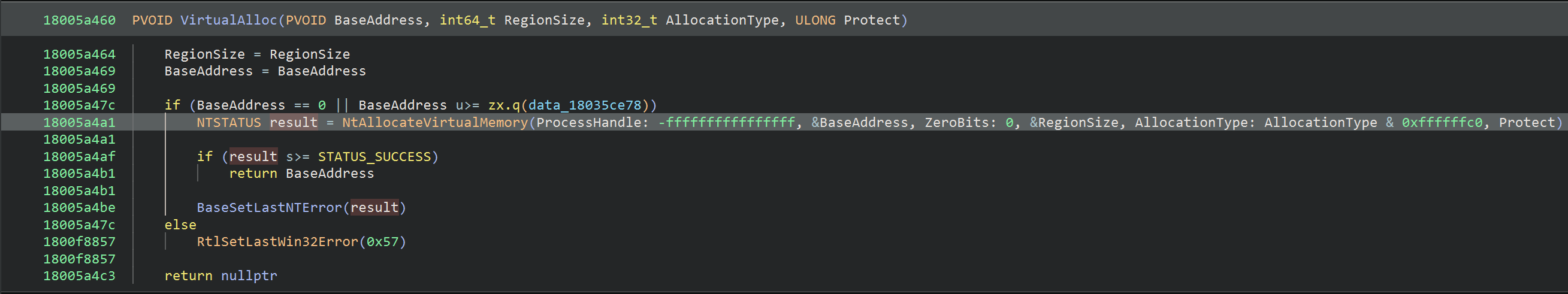 ntAllocateVirtualMemorySymbol = binary_view.get_symbol_by_raw_name("NtAllocateVirtualMemory")